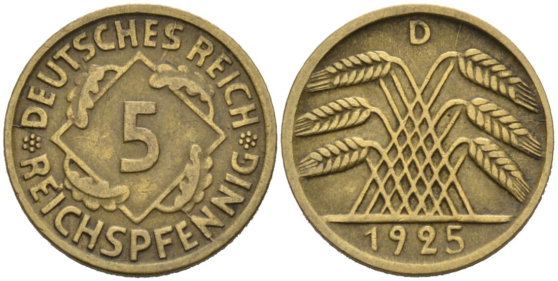 Германия 5 рейхспфеннигов 1925 D KM 39, J. 316 алюминиевая бронза 46-622