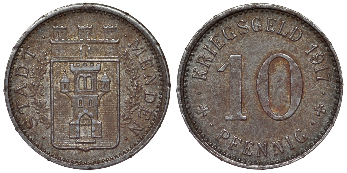 Германия, Менден 10 пфеннигов 1917 Северный Рейн-Вестфалия, нотгельд Funck 328.2 железо 4119-1057