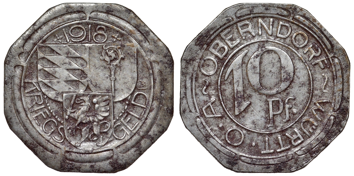 Оберндорф 10 пфеннигов 1918 Funck 392.2, Men05 19547.4, Men18 24506.4 железо 4119-1233