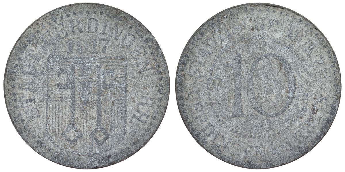Юрдинген 10 пфеннигов 1917 Funck 554.2A, Men05 25409.3, Men18 31820.3 цинк 4119-1045