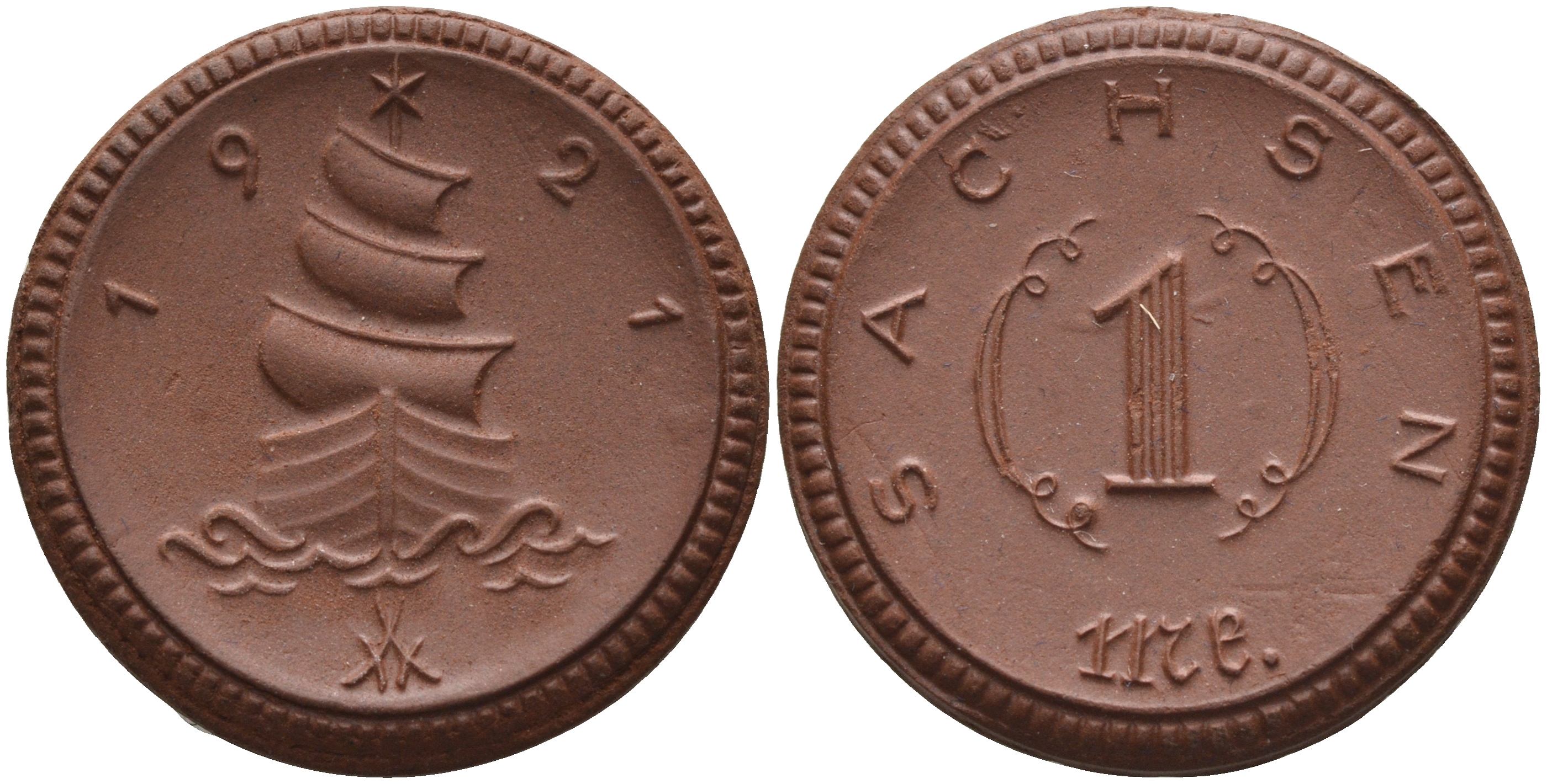Саксония 1 марка 1921 парусник J. N 55 фарфор 1094-4-35