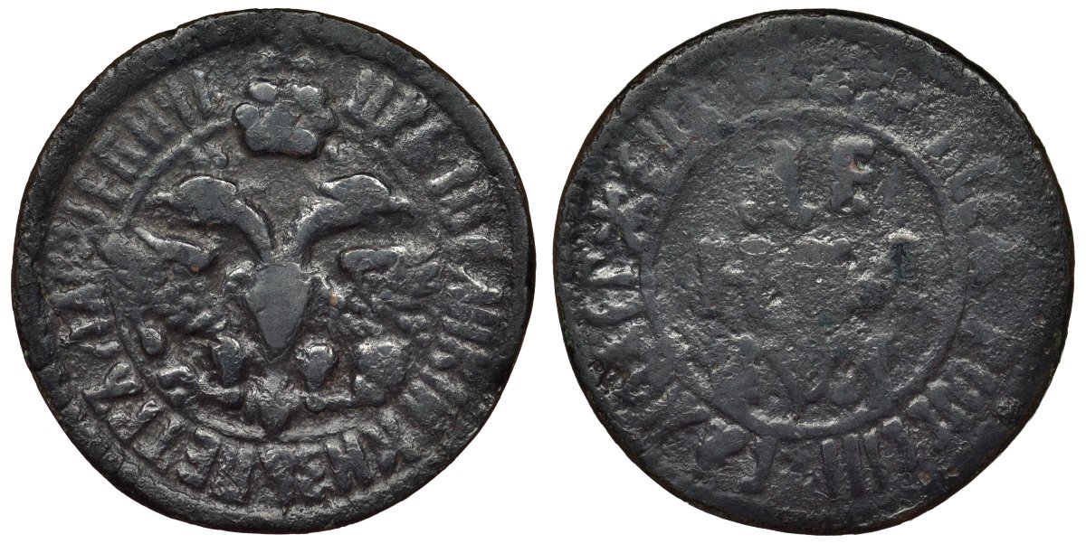 Россия деньга 1701 Набережный монетный двор Биткин 1433 R медь 00-818-23