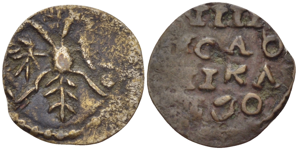 РОССИЯ ПОЛУШКА 1718-1722 ВЕС 0,45 ГР. медь 633-325