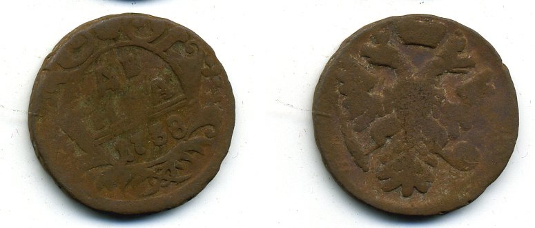 Россия деньга 1738 Анна Иоанновна (1730-1740) Биткин 365 медь 29-427