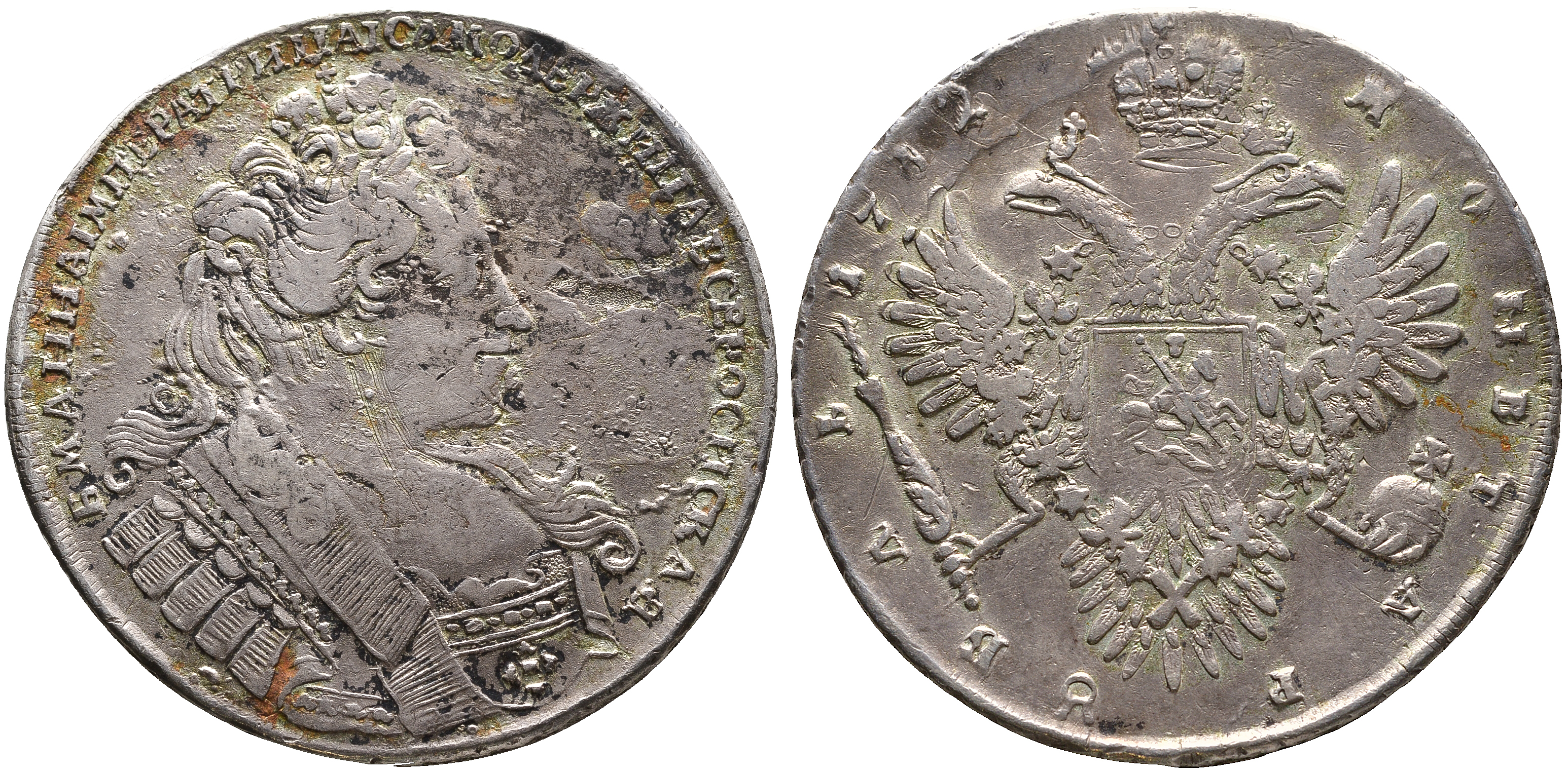 РОССИЯ 1 РУБЛЬ 1732 АННА (1730-1740) крест державы простой KM 192.1, Dav. 1670, Биткин 51 серебро 10-009-58