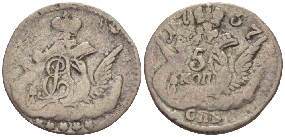 Россия 5 копеек 1757 СПБ, Елизавета Петровна (1741-1761), орел в облаках, вес 0,99 гр. Биткин 342 серебро 633-642