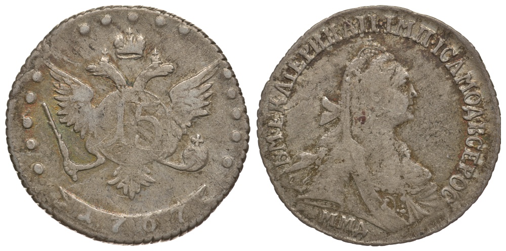 Россия 15 копеек 1767 ММД, Екатерина II (1762-1796) Биткин 162 серебро 00-813-61
