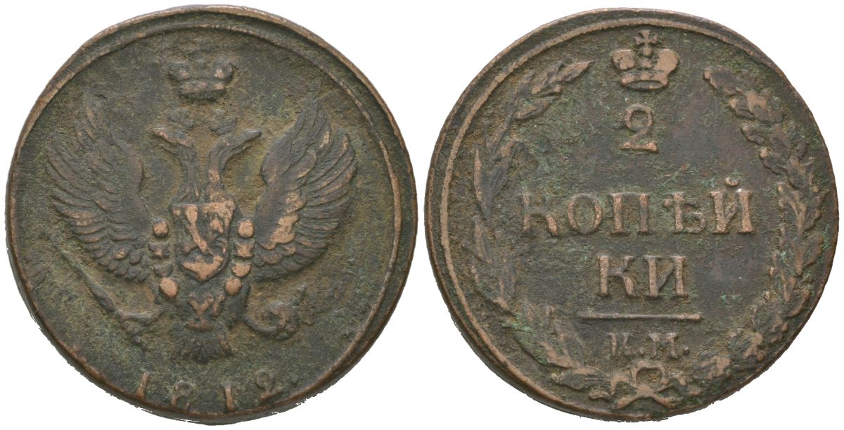 Россия 2 копейки 1812 КМ, Александр I (1801-1825) Биткин 481 медь 92-551