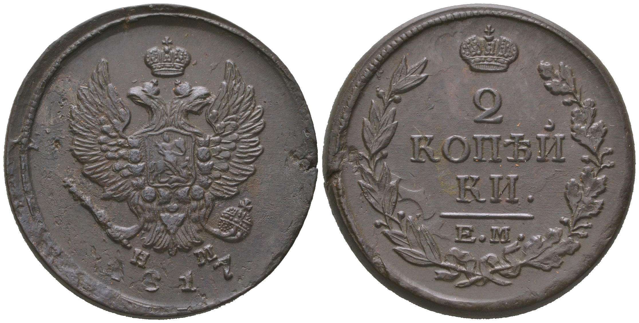 Россия 2 копейки 1817 ЕМ-НМ, Александр I (1801-1825), Екатеринбургский монетный двор Биткин 357 медь 4162-131