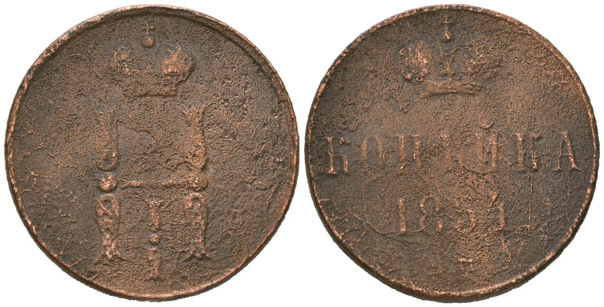 Россия 1 копейка 1854 ЕМ, Николай I (1825-1855) Биткин 608 медь 77-1034