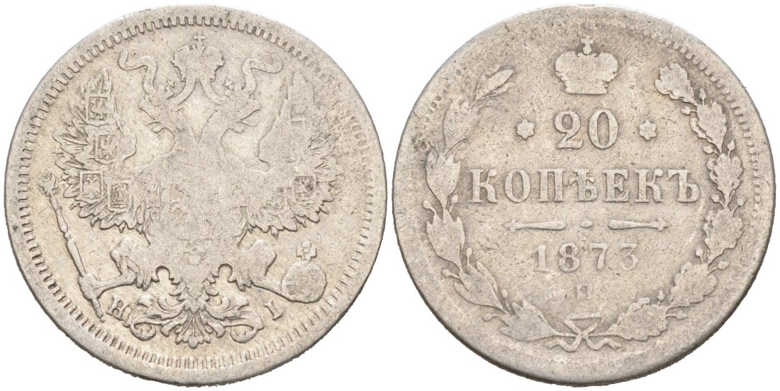 Россия 20 копеек 1873 СПБ-НI, Александр II (1855-1881), ОРЁЛ (1874-1881) Биткин 224 серебро 4566-224