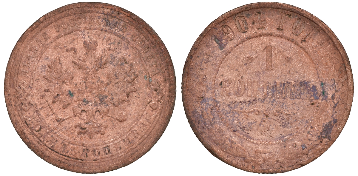 Россия 1 копейка 1904 СПБ Николай II Биткин 251 медь 51-513