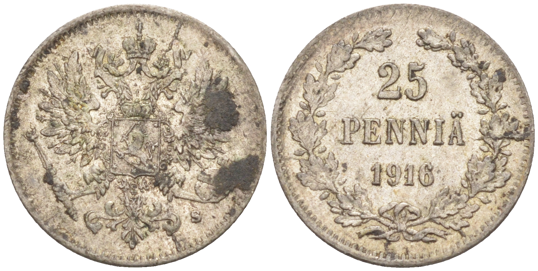 ФИНЛЯНДИЯ 25 ПЕННИ 1916 KM 6.2 серебро 63-356
