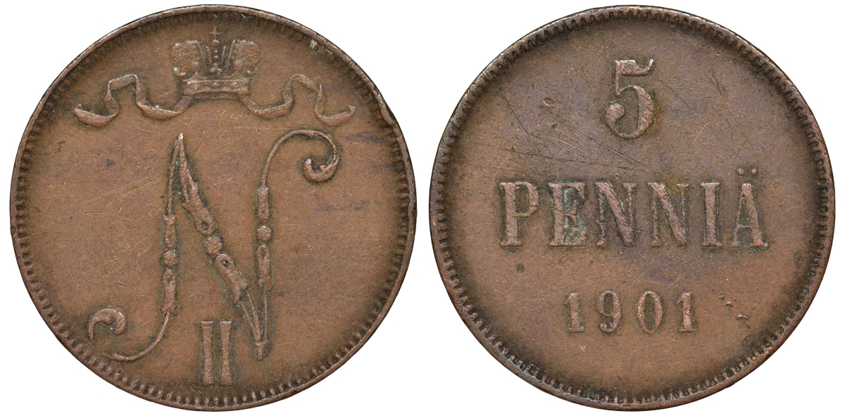 Россия для Финляндии 5 пенни 1901 Биткин 445 медь 51-1214