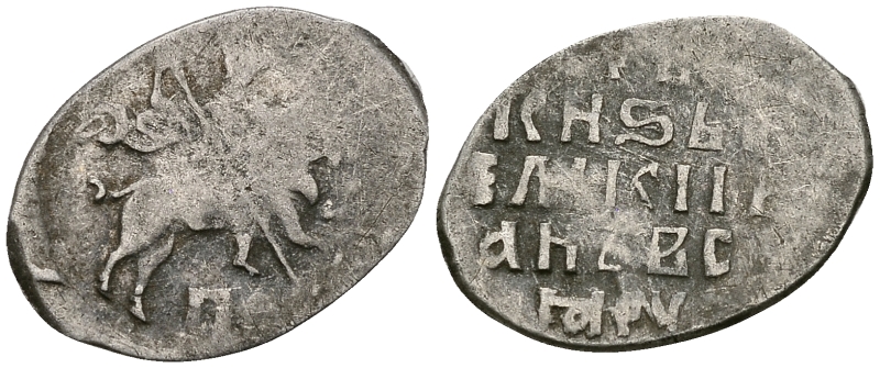 Русское Царство копейка 1547-1584 Иван IV Васильевич, Новгородский монетный двор, 0,67 ГР ГиК №77 серебро 262-432