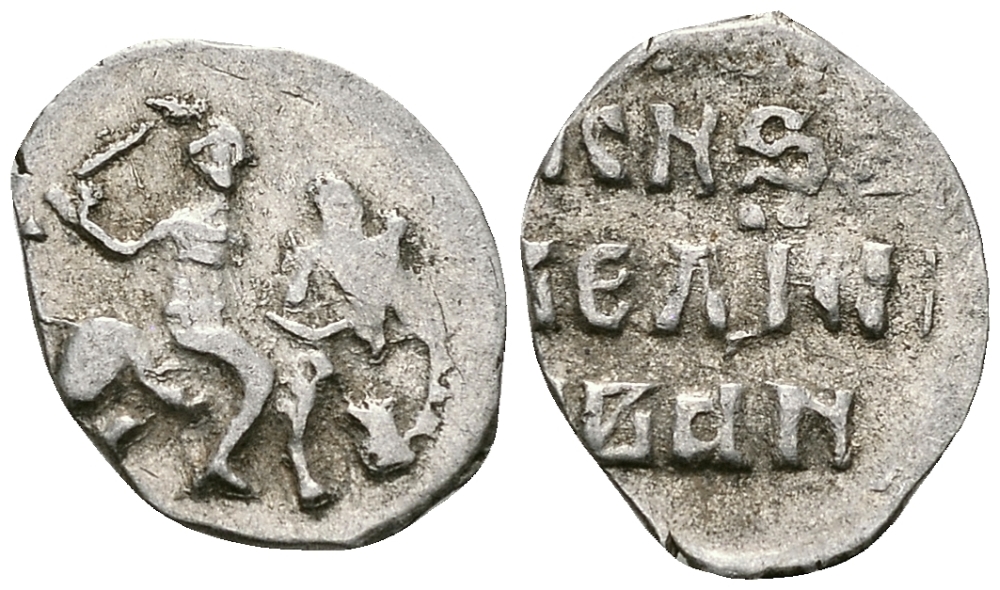 ВЕЛИКОЕ КНЯЖЕСТВО МОСКОВСКОЕ ДЕНГА 1535 - 1547 ИВАН IV ВАСИЛЬЕВИЧ, ТВЕРСКОЙ МОНЕТНЫЙ ДВОР, 0,34 ГР ГиК №67 серебро 262-1317