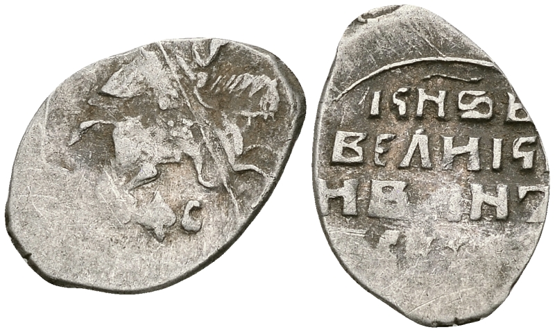 ВЕЛИКОЕ КНЯЖЕСТВО МОСКОВСКОЕ КОПЕЙКА 1535-1547 ИВАН IV ВАСИЛЬЕВИЧ, НОВГОРОДСКИЙ МОНЕТНЫЙ ДВОР, 0,68 ГР ГиК №76 серебро 262-139