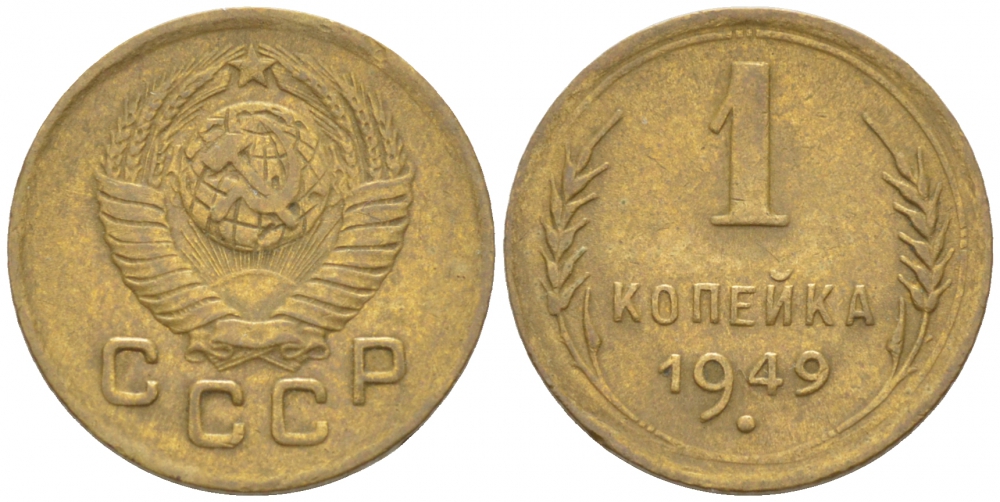СССР 1 копейка 1949 KM 112, Федорин 104 алюминиевая бронза 3309-749