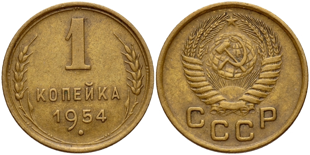 СССР 1 КОПЕЙКА 1954 Федорин 120 KM 112 алюминиевая бронза 26-838