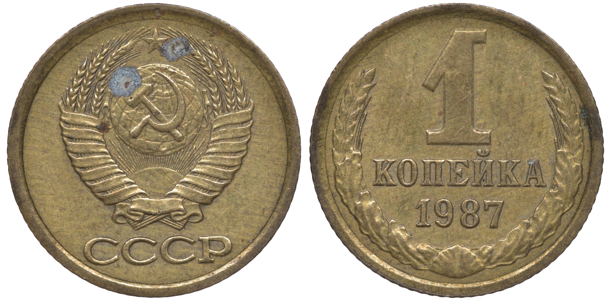 СССР 1 копейка 1987 Федорин 174 KM 126а латунь 4609-1047