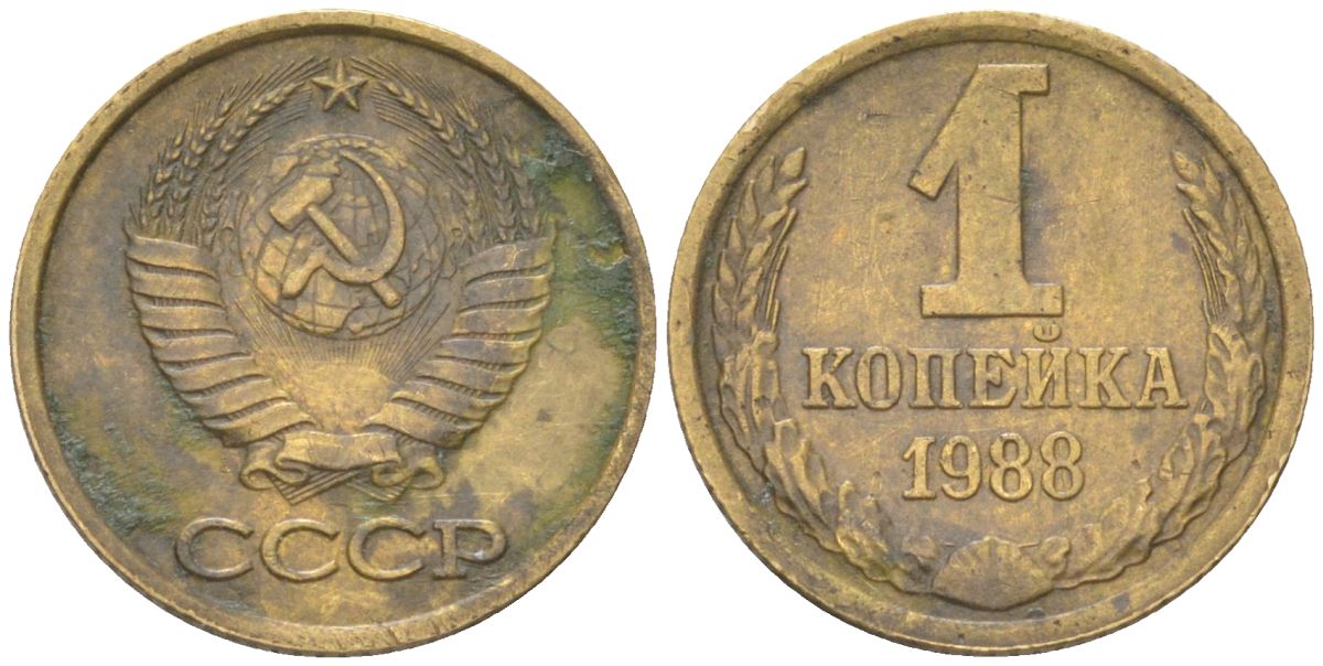 СССР 1 копейка 1988 Y 126a, Schon 75a латунь 4613-568