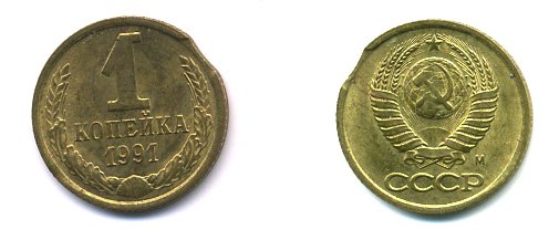 СССР 1 КОПЕЙКА 1991 M Y#126a латунь 26-1125