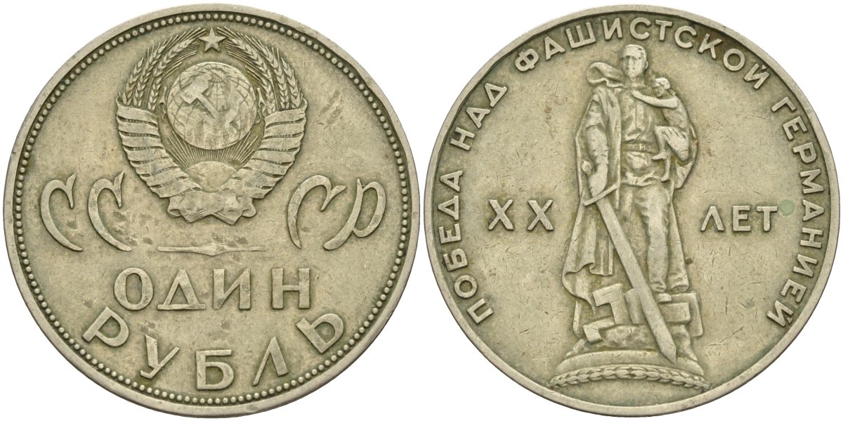 СССР 1 рубль 1965 20 лет Победы в Великой Отечественной войне KM 135.1 медь никель цинк 4140-121
