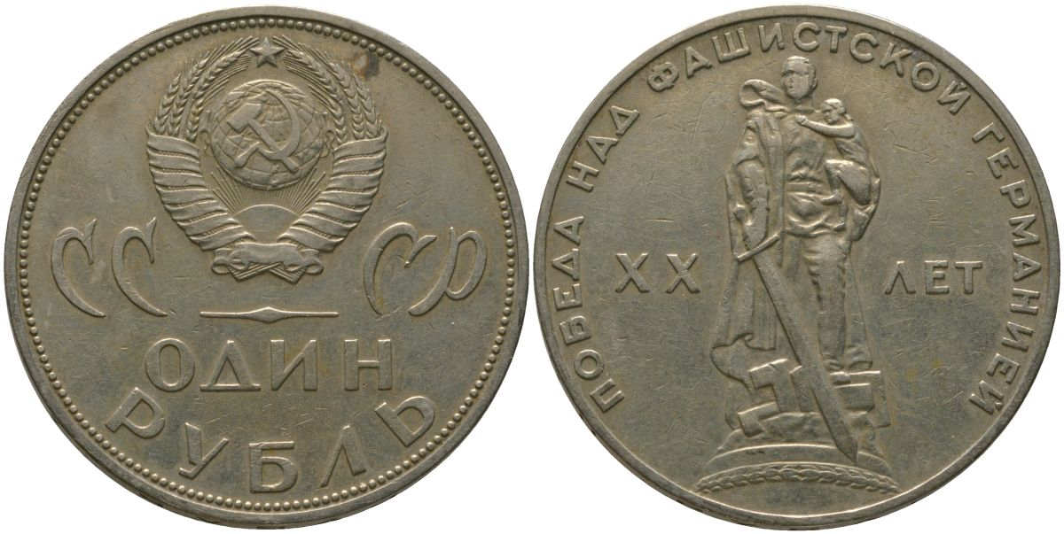 СССР 1 рубль 1965 20 лет Победы в Великой Отечественной войне KM 135.1 медь никель цинк 4565-1015