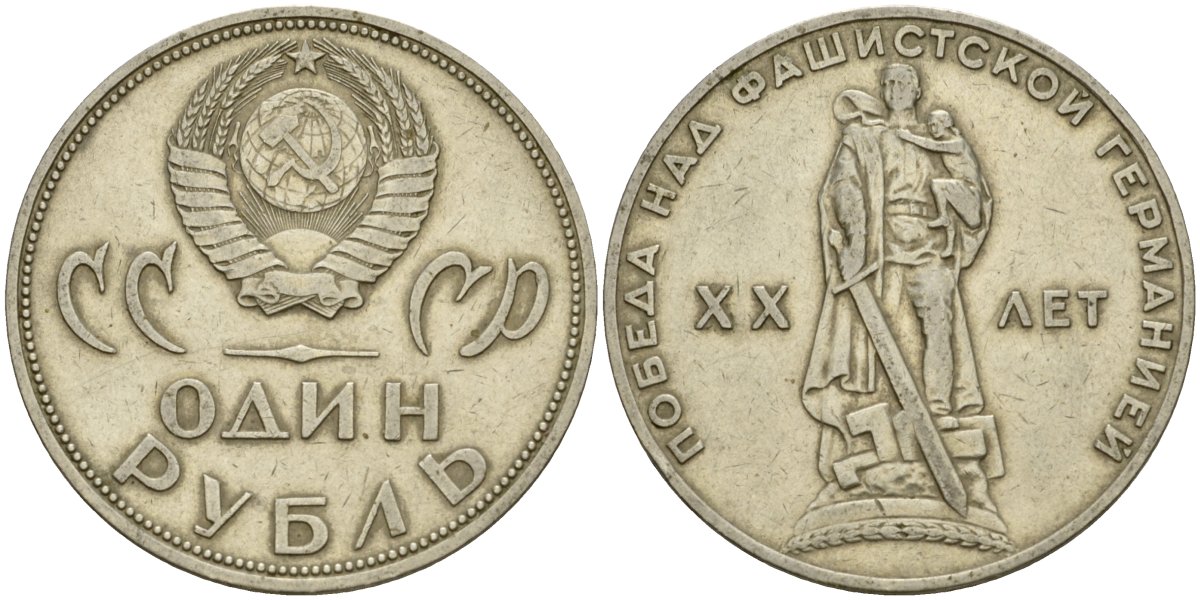 СССР 1 рубль 1965 20 лет Победы в Великой Отечественной войне KM 135.1 медь никель цинк 4599-811