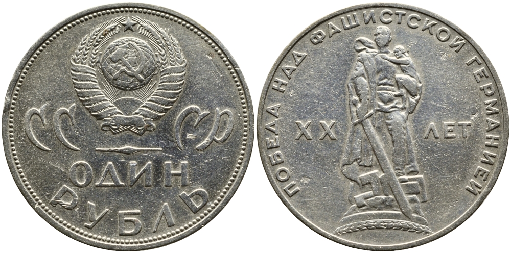 СССР 1 рубль 1965 20 лет Победы в Великой Отечественной войне KM 135.1 медь никель цинк 79-242