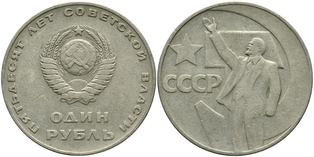 СССР 1 рубль 1967 50 лет Революции 1917 года KM 140.1 медь никель цинк 4536-514