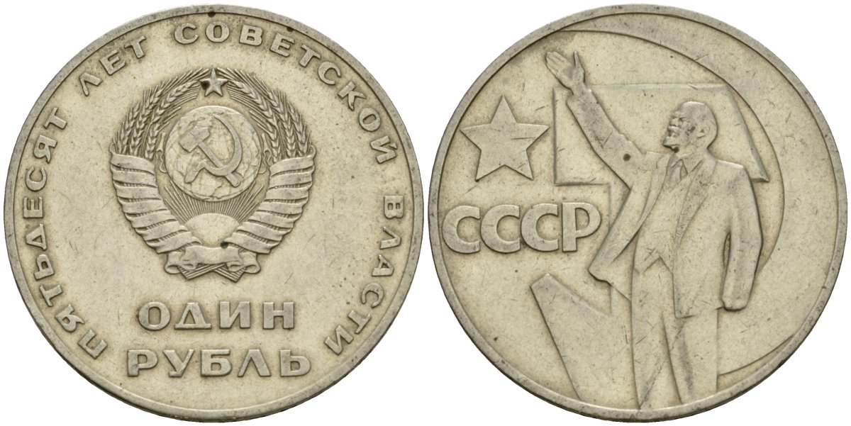СССР 1 рубль 1967 50 лет Революции 1917 года KM 140.1 медь никель цинк 4599-822