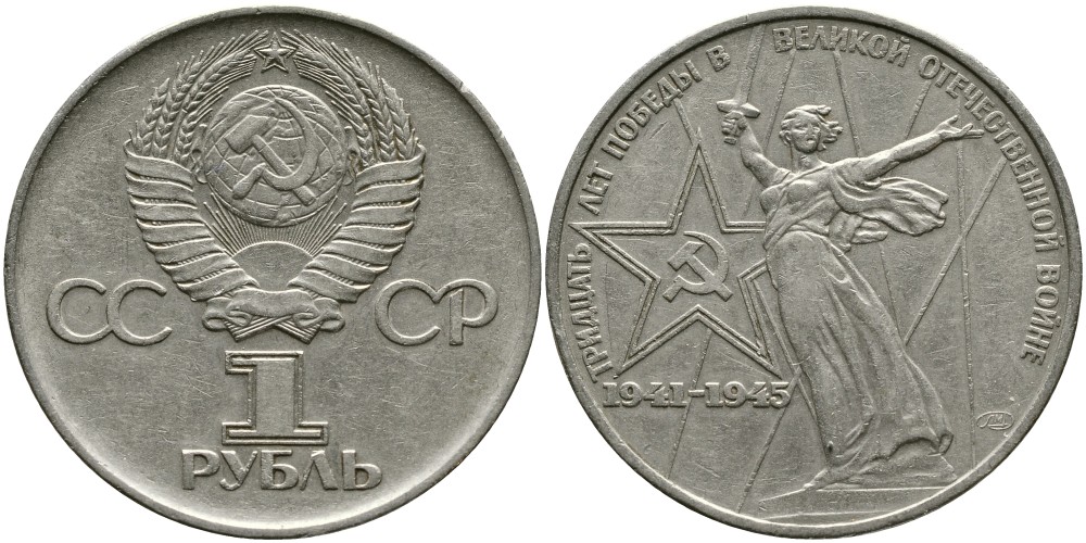 СССР 1 рубль 1975 30 лет Победы в Великой Отечественной войне KM 142.1 медь никель цинк 4536-931