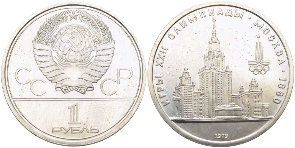 СССР 1 рубль 1979 Летние Олимпийские игры 1980 года в Москве, здание МГУ KM 164 медь никель цинк UNC 1081-2-45