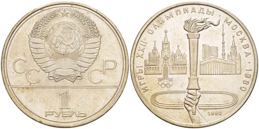 СССР 1 РУБЛЬ 1980 ОЛИМПИАДА 80, ФАКЕЛ, ОЛИМПИЙСКИЙ ОГОНЬ KM 178 медь никель цинк 4183-1135