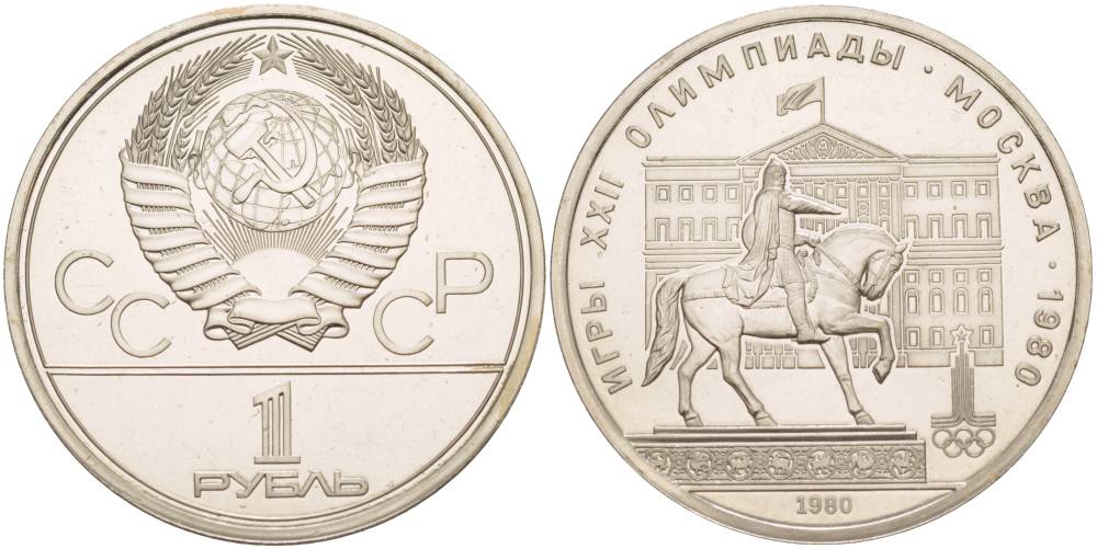 СССР 1 РУБЛЬ 1980 ОЛИМПИАДА 80, ПАМЯТНИК ЮРИЮ ДОЛГОРУКОМУ, МОССОВЕТ KM 177 медь никель цинк UNC 4542-335