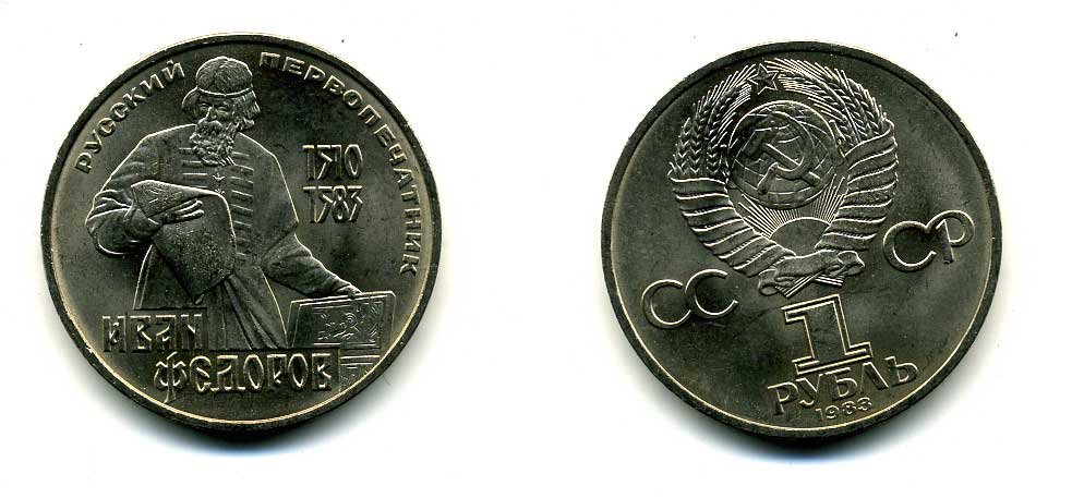 СССР 1 РУБЛЬ 1983 ИВАН ФЕДОРОВ (1510-1583) KM 193.1 медно-никель 79-621