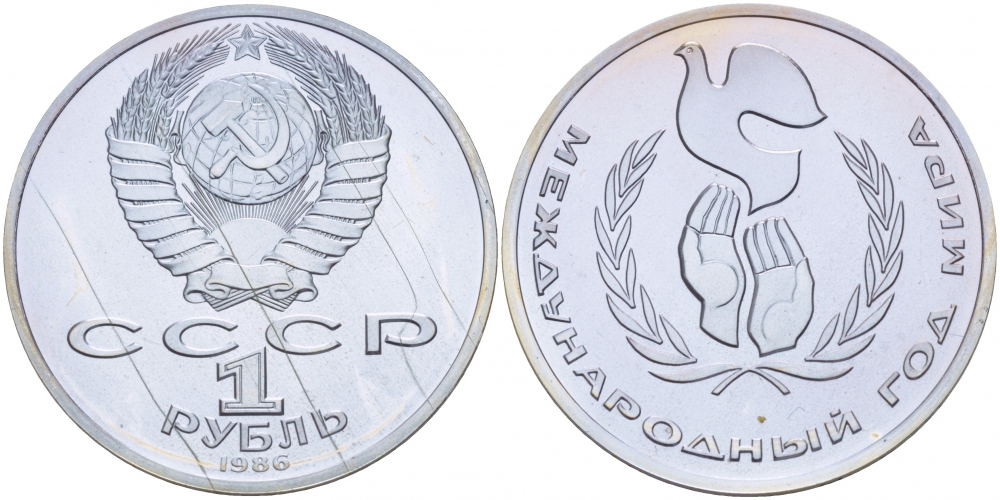 СССР 1 РУБЛЬ 1986 МЕЖДУНАРОДНЫЙ ГОД МИРА, СТАРОДЕЛ KM 201.3 медно-никель PROOF 413-2635