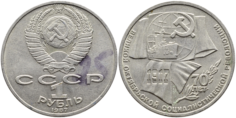 СССР 1 РУБЛЬ 1987 70 ЛЕТ ОКТЯБРЬСКОЙ РЕВОЛЮЦИИ KM 206 медно-никель 4389-931