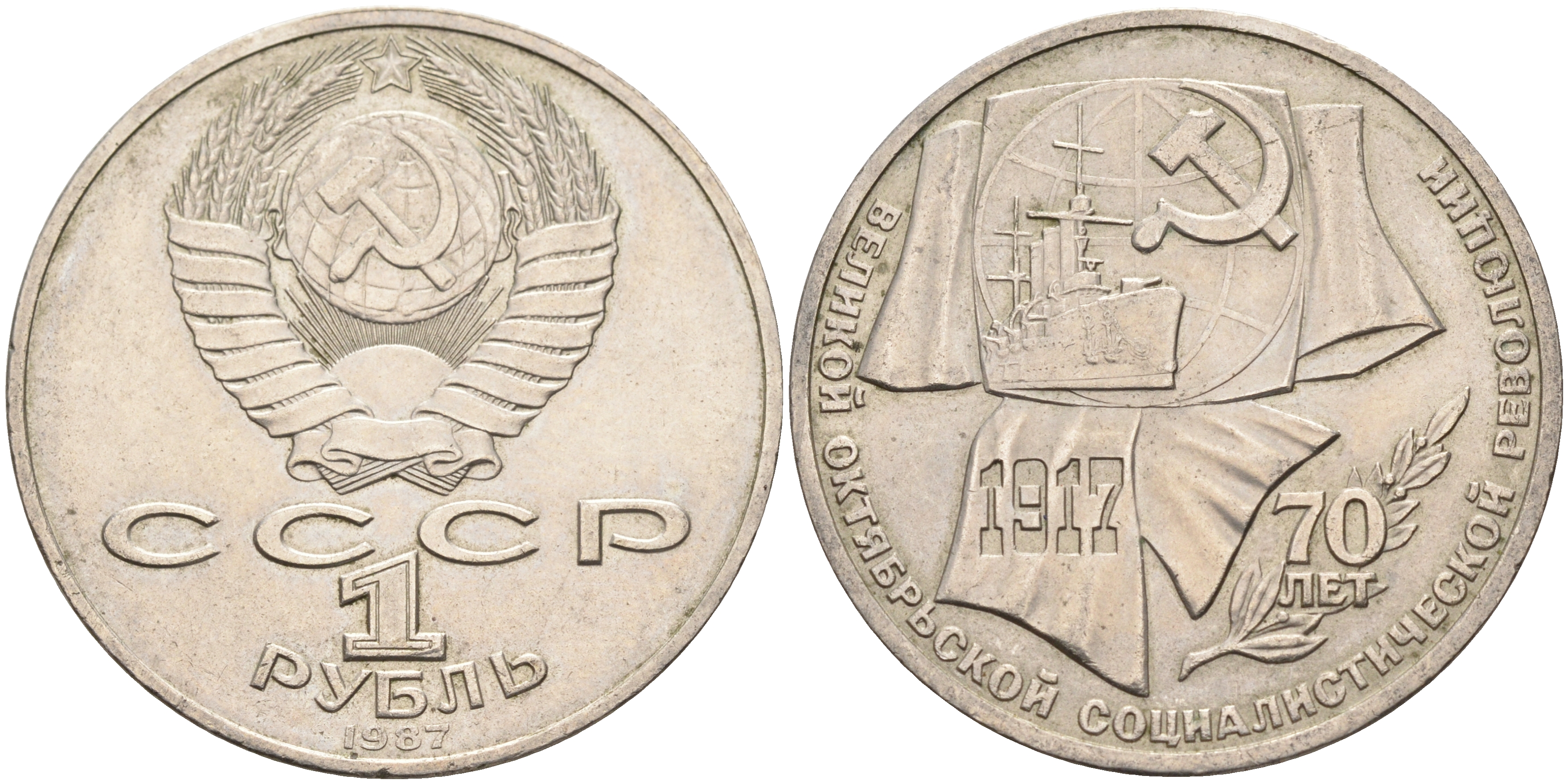 СССР 1 РУБЛЬ 1987 70 ЛЕТ СОВЕТСКОЙ ВЛАСТИ KM 206 медно-никель 63-1245