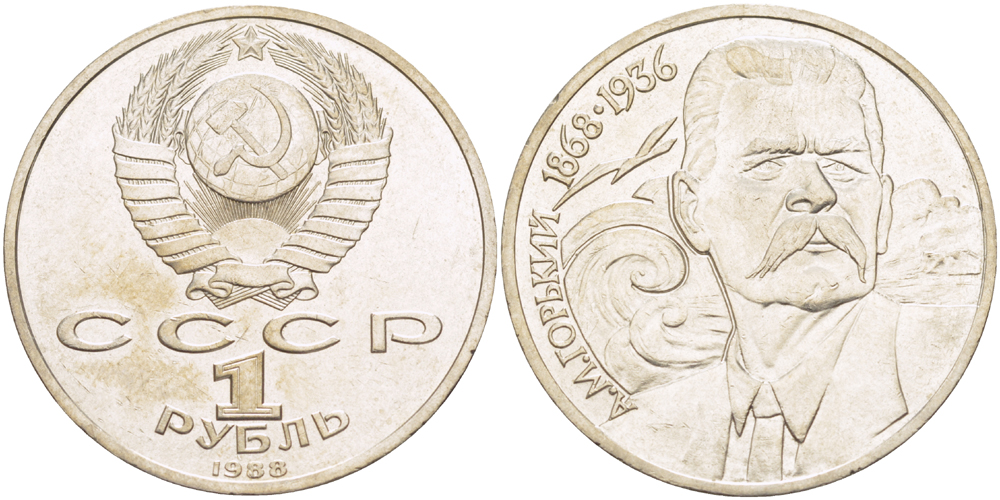 СССР 1 РУБЛЬ 1988 120 ЛЕТ СО ДНЯ РОЖДЕНИЯ МАКСИМА ГОРЬКОГО (1868-1936) KM 209 медно-никель 4183-535