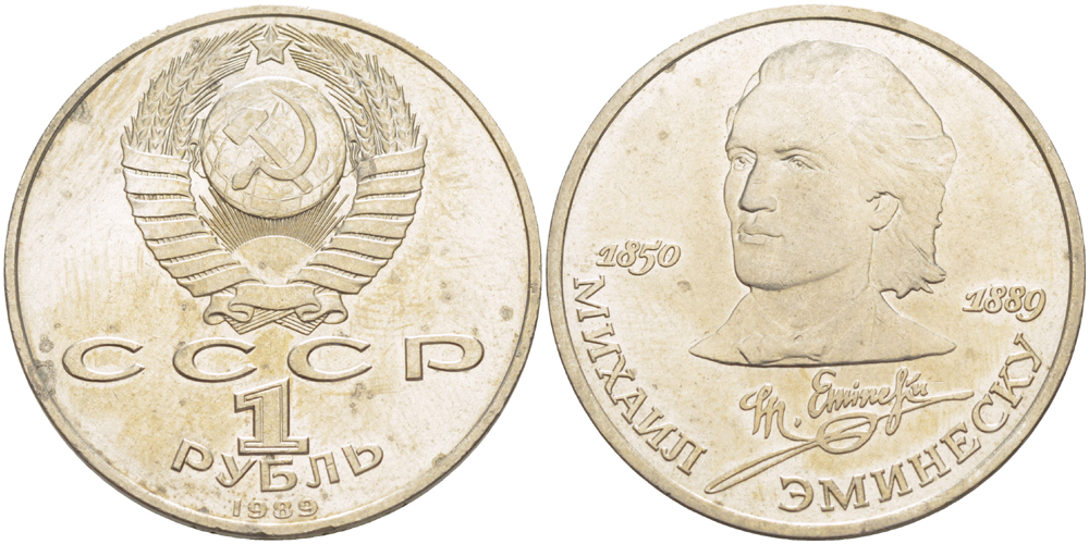 СССР 1 рубль 1989 100 лет со дня рождения Михая Эминеску (1850-1889) KM 233 медно-никель 4183-526