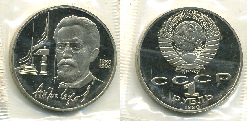 СССР 1 РУБЛЬ 1990 130 ЛЕТ СО ДНЯ РОЖДЕНИЯ АНТОНА ПАВЛОВИЧА ЧЕХОВА, В ЗАПАЙКЕ KM 240 медно-никель PROOF M37-20