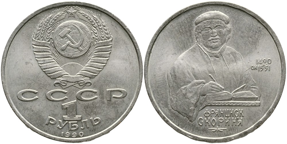 СССР 1 рубль 1990 500 лет со дня рождения Франциска Скорины (1490-1551) KM 258 медно-никель 4536-1122