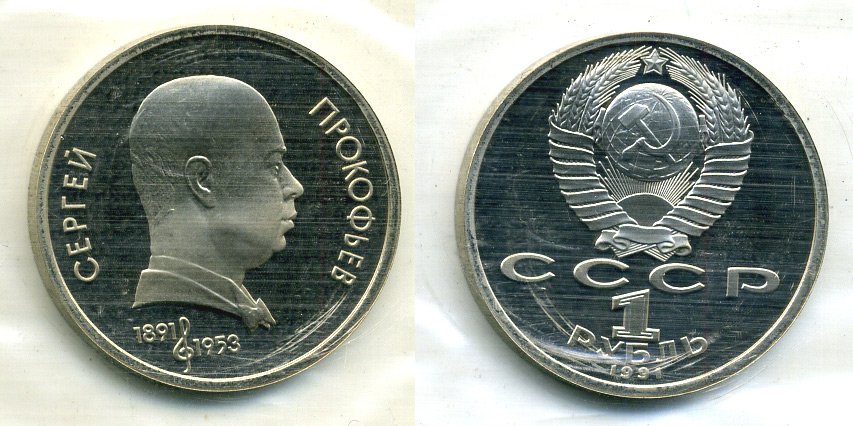 СССР 1 РУБЛЬ 1991 100 ЛЕТ СО ДНЯ РОЖДЕНИЯ СЕРГЕЯ СЕРГЕЕВИЧА ПРОКОФЬЕВА, В ЗАПАЙКЕ KM 263.1 медно-никель PROOF M37-18