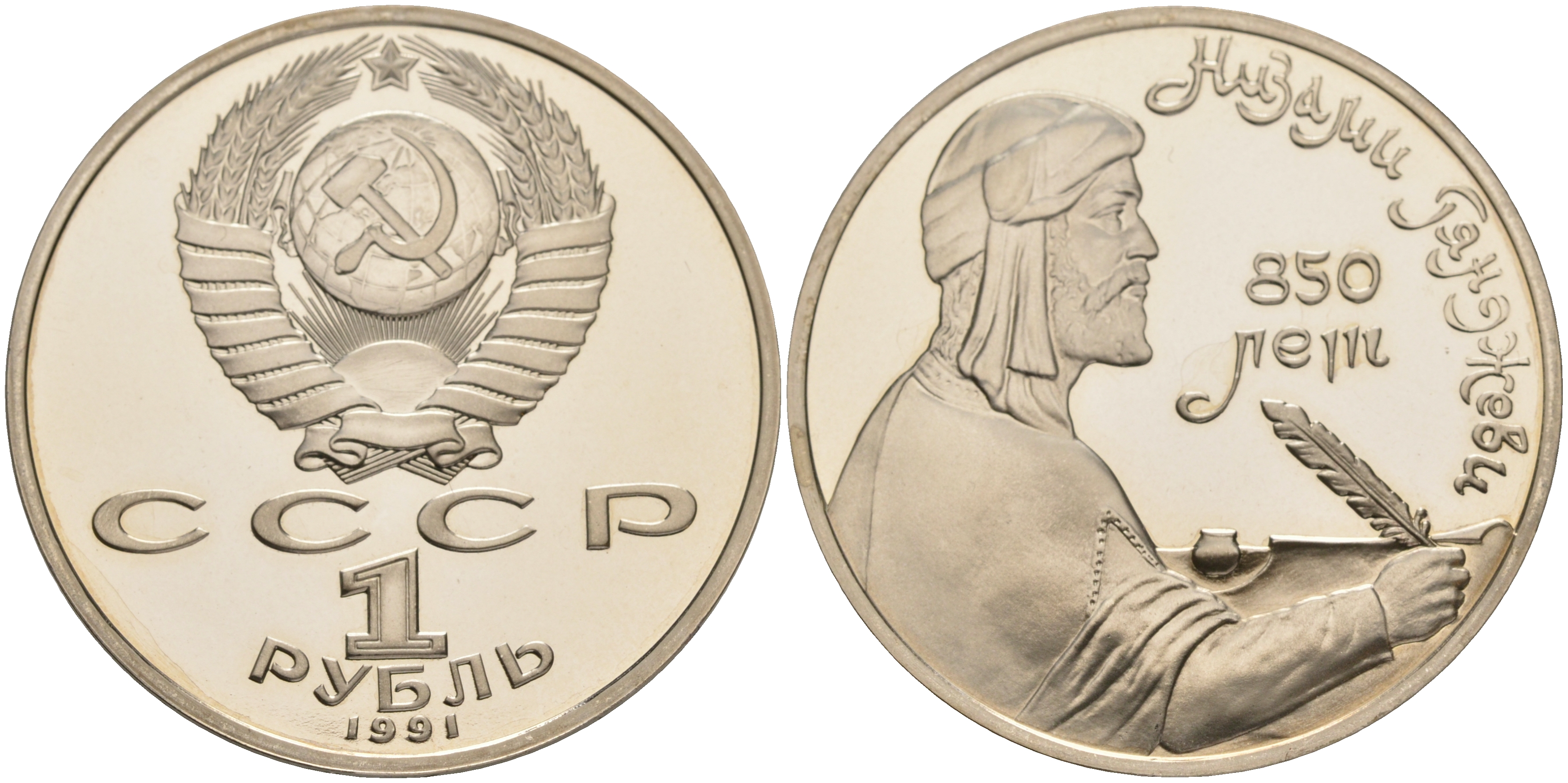 СССР 1 рубль 1991 850 лет со дня рождения Низами Гянджеви KM 284 медно-никель PROOF 1087-10-51