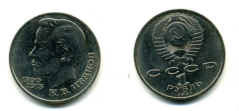 СССР 1 РУБЛЬ 1991 КОНСТАНТИН ИВАНОВ (1890-1915) KM 282 медно-никель 79-415