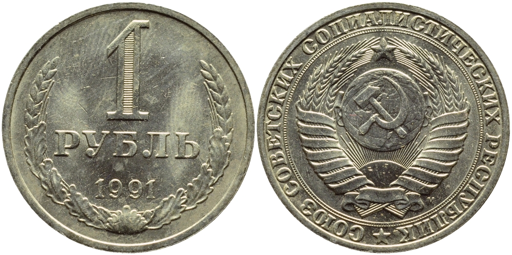 СССР 1 РУБЛЬ 1991 М KM 134a.2 медь никель цинк aUNC 89-113