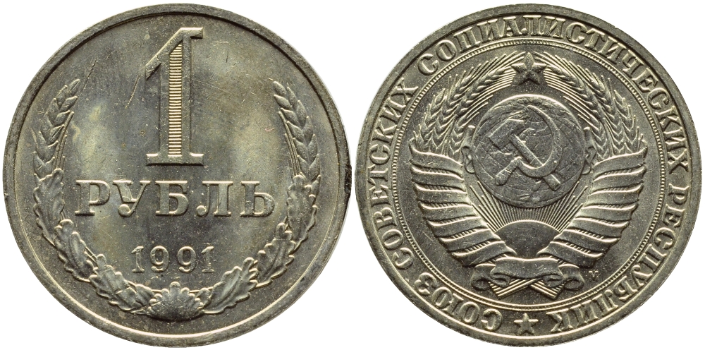 СССР 1 РУБЛЬ 1991 М KM 134a.2 медь никель цинк aUNC 89-235