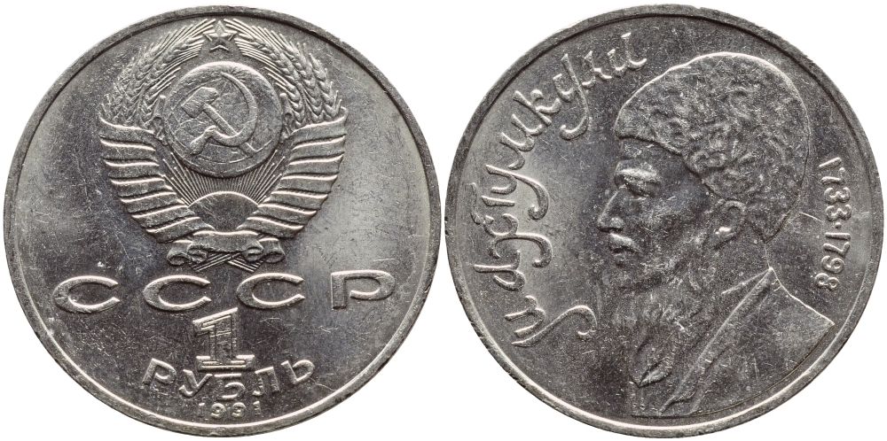 СССР 1 РУБЛЬ 1991 МАХТУМКУЛИ ФРАГИ (1733-1798) KM 283 медно-никель 4389-735